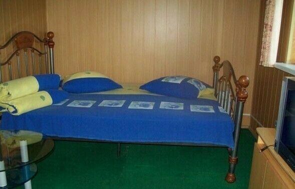 - В номерах двуспальная кровать, телевизор, холодильник, тумбочка, журнальный столик, электрический чайник.