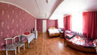 1 двуспальная кровать и 2 односпальные кровати или раскладной диван, ТВ, чайник, Вентилятор, Тумбы, вешалки, Х, с/у в номере