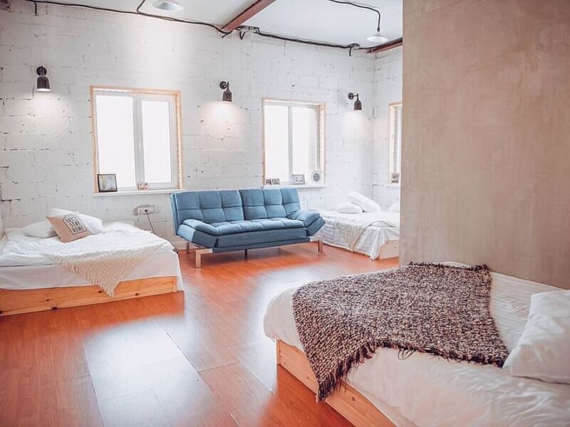 Номер LOFT #1 - 50 кв.м рассчитан на небольшую компанию с 8 спальных мест