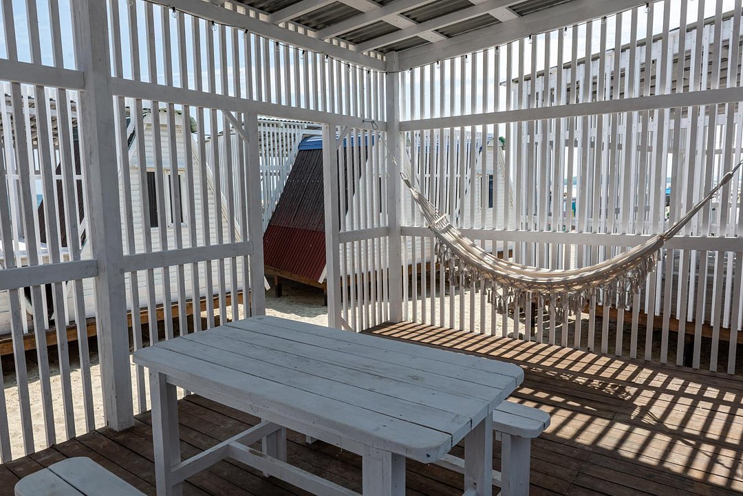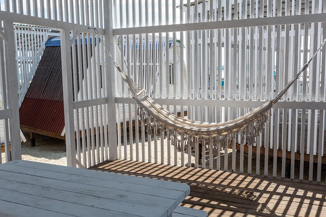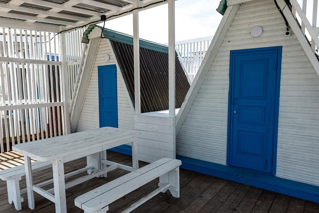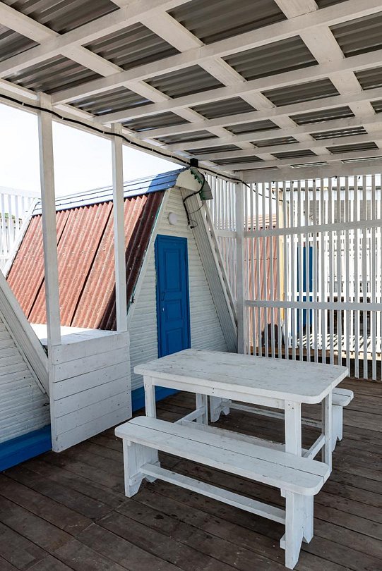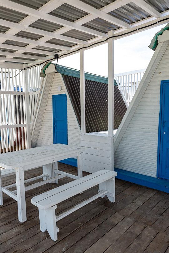 На территории базы Вас ожидают уютные домики с удобствами, расположенные на первой линии от моря, и чистый песчаный пляж с развитой инфраструктурой. Для проживания доступны барнхаусы, караваннинг Парк и стильные дуплексы. Дуплексы представляют собой соединение двух треугольных домиков с общей беседкой, которые идеально подойдут для семейных групп и создадут атмосферу уединенности. Беседка защищает от палящего солнца и предоставляет восхитительный вид на море, что делает завтраки и ужины особенны атмосферными. Для удобства проживающих предусмотрен современный санитарный блок городского типа с душевыми (горячая и холодная вода) и аккуратными туалетами.