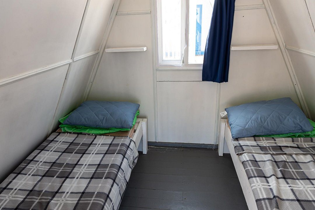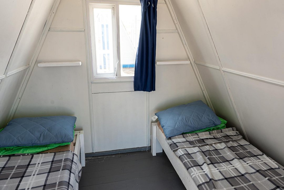 2й домик - 2 односпальные кровати, матрасы, одеяла, подушки, свет и розетка.