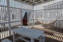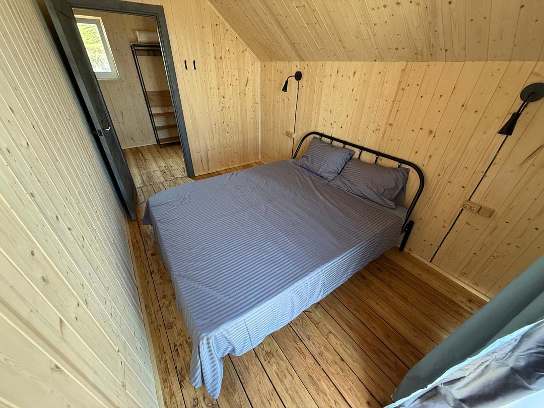 1й домик - 2х спальная кровать, холодильник, матрасы, одеяла, подушки, свет и розетка.