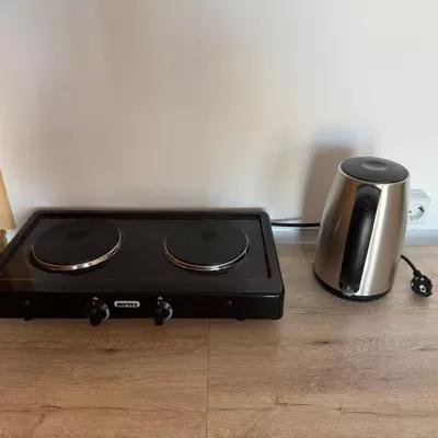 Для удобства гостей в номере есть кондиционер, телевизор, Wi‑Fi и всё необходимое для отдыха. Кухня оборудована плитой, микроволновкой, чайником, холодильником и базовым набором посуды — можно готовить и наслаждаться домашними завтраками на террасе.