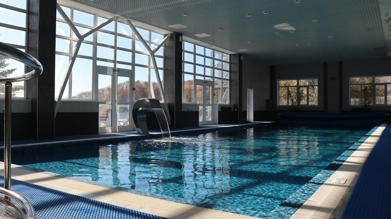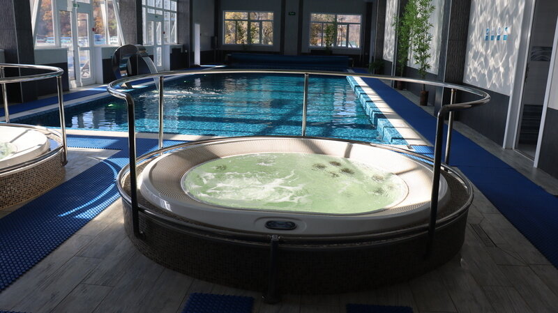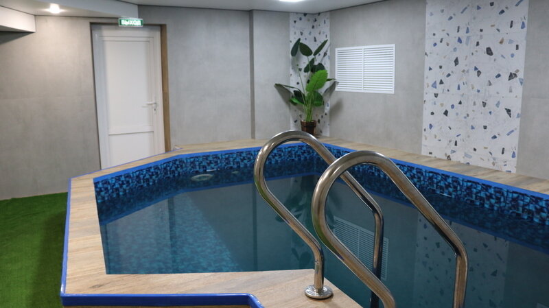 Тип бассейна: крытый бассейнВода в бассейне: подогреваемый бассейнТемпература в бассейне: 28 °CРазмеры: 6 x 18 мПлощадь: 108 м²Время работы: от 09:00 до 20:00Глубина (диапазон): от 50 до 180 см -