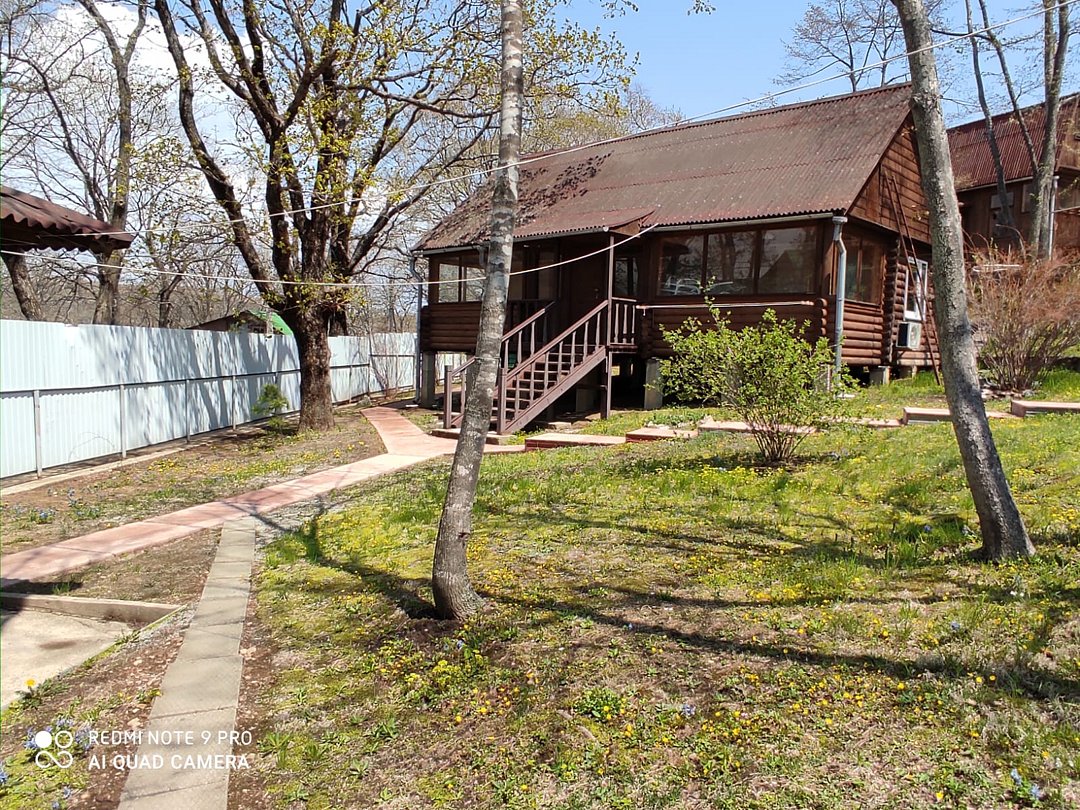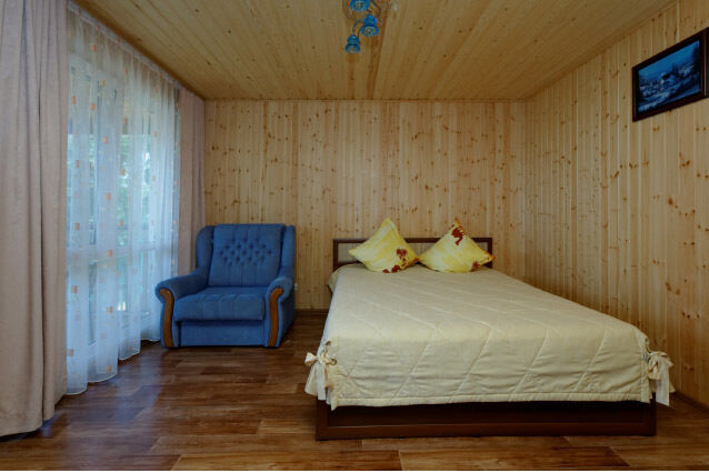Домик из круглого бревна с двумя двухкомнатными номерами «люкс», рассчитанными на пребывание 2-3 человек в каждом.