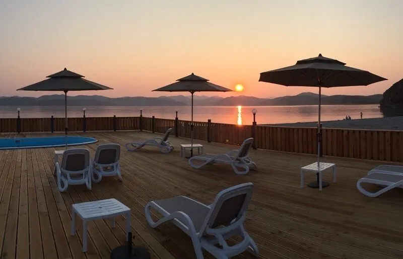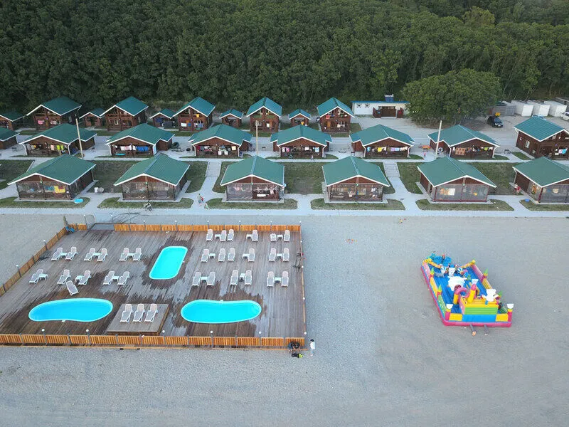 Здесь 15 отдельно стоящих домиков коттеджного типа, срубленных из экологически чистого дерева, построенных на побережье – с одной стороны лес, с другой море, а песчаный пляж – прямо перед вами.