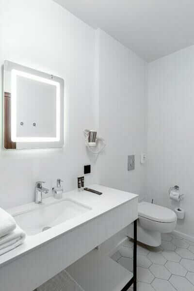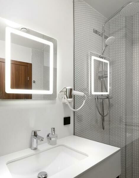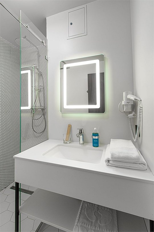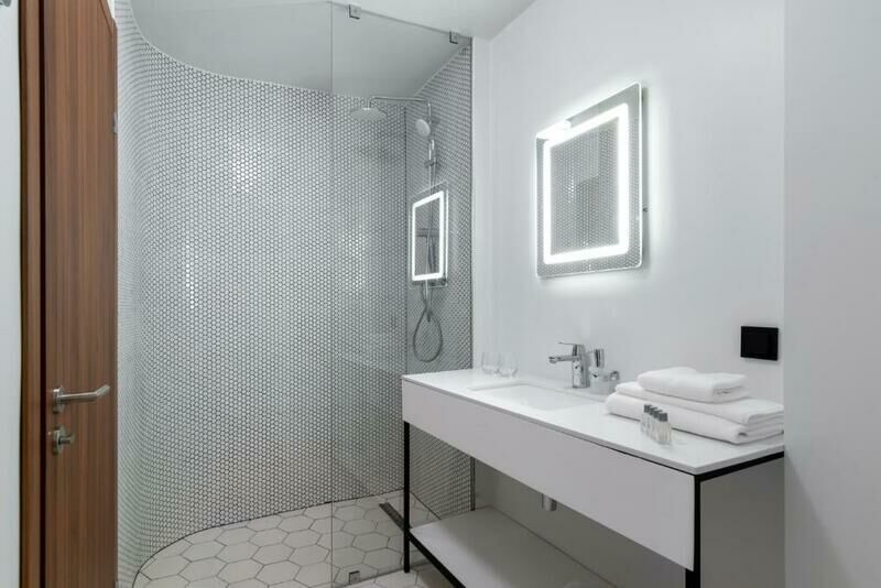 телевизор, спутниковое телевидение, Wi-Fi, интернет, телефон, кондиционер, фен, будильник, электронные замки, ванная комната, душевая кабина, теплый пол, банные принадлежности, банные полотенца, тапочки, косметические средства, кровать «King size», две односпальные или большая двуспальная кровать, стулья, журнальный столик, багажная тумба, зеркало, звуконепроницаемые стены и окна, обслуживание номеров, сейф, чайник, ковровое покрытие, отопление, вид на город, кресло, вид во двор, меню подушек, стаканы, туалетный столик, кофейный столик, стул, туалетные средства, туалет, цифровое тв, телевизор с плоским экраном, номер для некурящих, рабочий стол, холодильный шкаф, экологичный подход, набор для приготовления чая и кофе, услуги прачечной (платно), окна от пола до потолка, дождевой и ручной душ, можно с питомцамиВ номере