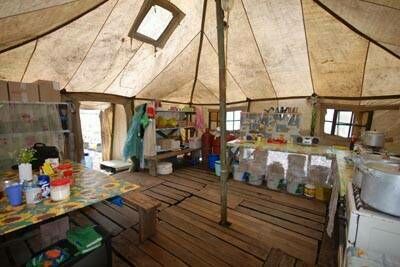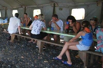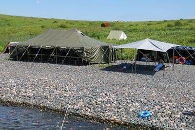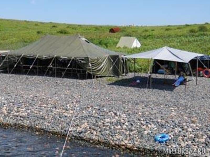 Территория, инфраструктура и удобстваКолодецНа территории городка оборудован колодец - источник пресной воды. КолодецОписаниеНа территории городка оборудован колодец - источник пресной воды. Санитарная зонаВ палаточном городке так же оборудованы туалет и умывальники. Санитарная зонаОписаниеВ палаточном городке так же оборудованы туалет и умывальники. Кают-компанияВ большой армейской палатке площадью около 50 квадратных метров оборудована Кают - кампания. Рядом с ней - тент от солнца. Есть возможность подзарядить аккумулятор сотового телефона, фотоаппарата или видеокамеры.   Кают-компанияОписаниеВ большой армейской палатке площадью около 50 квадратных метров оборудована Кают - кампания. Рядом с ней - тент от солнца. Есть возможность подзарядить аккумулятор сотового телефона, фотоаппарата или видеокамеры.