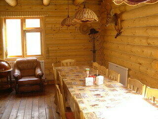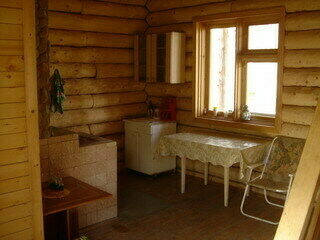 Настоящая русская баня на дровах находится в самом удаленном уголке на территории базы отдыха «Охотное подворье» в лесной чаще у предгорья сопки по течению ручья. Парная с печью на камнях вместимостью до 6 человек. Любые веники (березовые, дубовые, хвойные) только приветствуются и могут быть предоставлены по первому требованию. В просторном предбаннике - купель с всегда холодной водой, душевая комната, а также отдельный выход на открытую веранду с видом на лес и ручей. Отдельной достопримечательностью русской бани является комната отдыха, имеющая выход на балкон с прекрасным видом на природу. Здесь можно устроить застолье на 10-12 человек. В комнате отдыха есть камин, а также мягкий диван для отдыха.