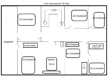 На втором этаже несколько спальных помещений эконом-класса расчитаных на проживания 18 человек:
