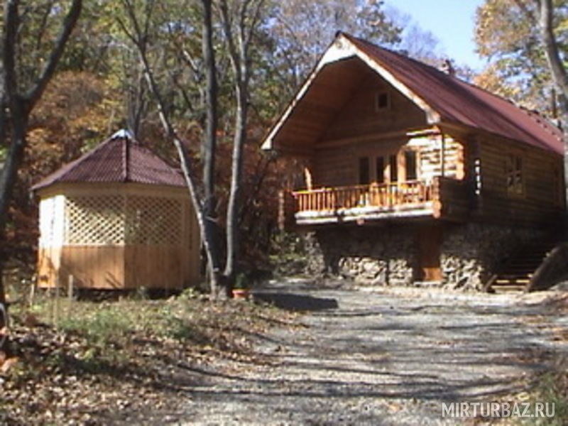 Дом «Русская дача» представляет собой 2-этажный бревенчатый дом с открытой верандой на первом этаже и балконом на втором этаже с видом на море. Дом находится ориентировочно в 100 метрах от береговой полосы бухты. На первом этаже располагается гостиная с камином, кухня и туалет. На втором этаже - одна спальная комната с 2-спальной кроватью, раскладным диваном на 2 человека и выходом на балкон с видом на море и одна спальная комната с 2-мя односпальными кроватями с видом на лес. Отопление – печное. Водоснабжение – централизованное, из артезианской скважины.