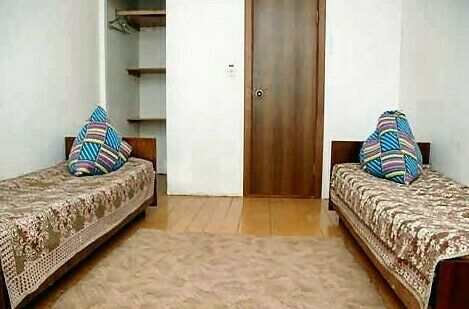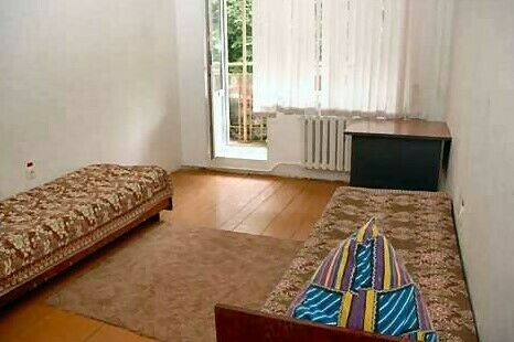 Двуспальная кровать, холодильник, ТВ с магнитофоном, ванная комната.