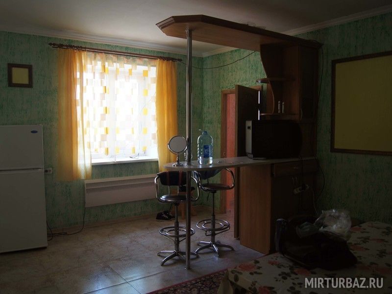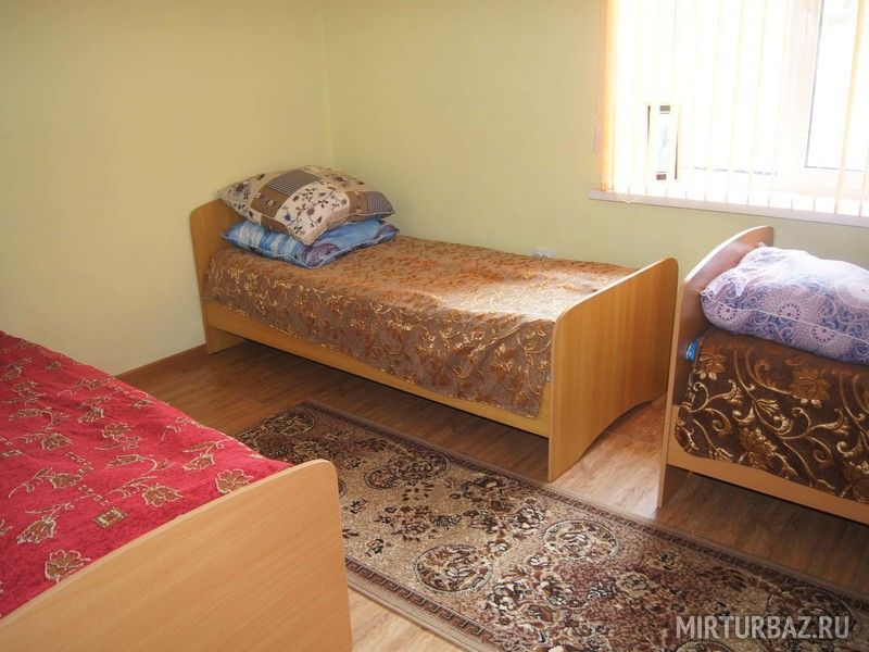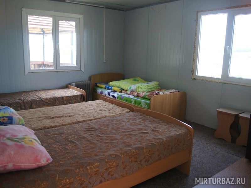 Четыре односпальных кровати, тумбочка, маленький холодильник. Один из домиков имеет террасу. У каждого домика находится беседка с мангалом, пользование которыми входит в стоимость проживания. Удобства находятся на улице (летний душ, туалет деревенского типа).