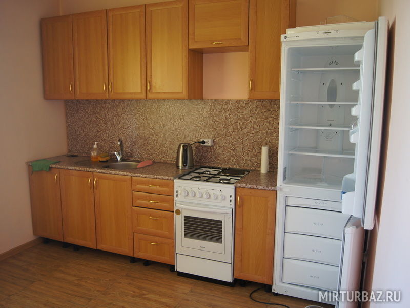 Дом разделен на спальню, кухню и зал. В спальне расположены 6 односпальных кроватий. В зале имеется камин, двуспальный диван. Кухня оборудована газовой печью, микроволновой печью, чайником, раковиной с горячей водой. В доме имеется санузел (туалет, душ с горячей водой). К дому пристроена веранда на которой стоит стол и стулья.