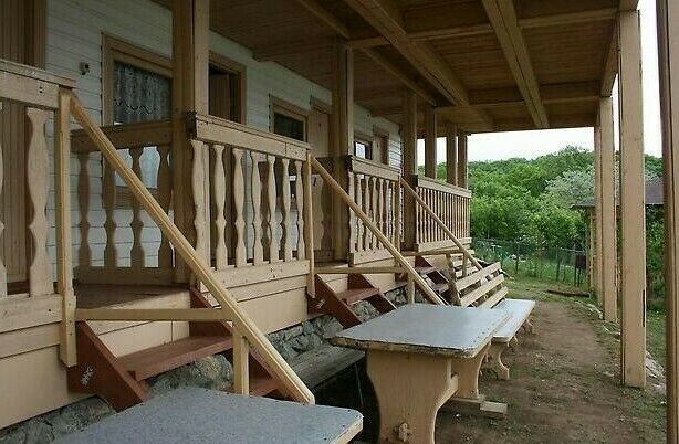 В номере кровати, постельное белье, одеяло, полотенца, тумбочки, вешалка для одежды. На улице у каждого номера стол с лавочкой.