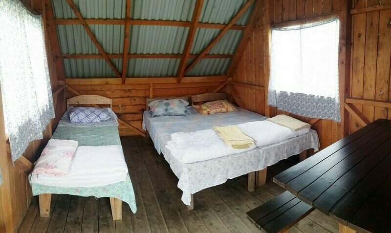 Комнаты укомплектованы холодильником, столом, лавочками или табуретками, розеткой, тремя местами для сна.