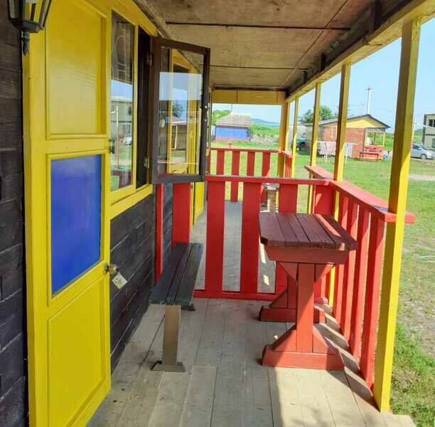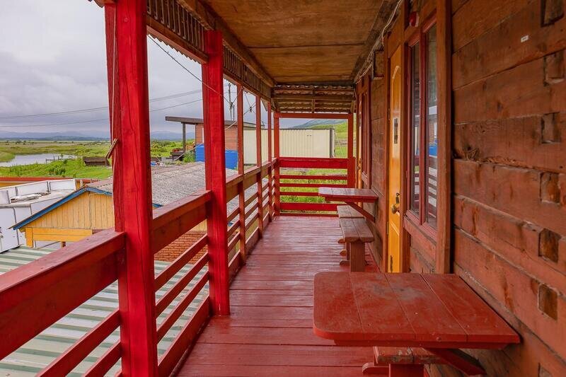 Коттеджи располагаются напротив детской и волейбольной площадок, в центре турбазы.Для каждой комнаты предусмотрен свой столик и стулья на веранде.