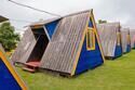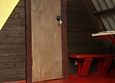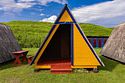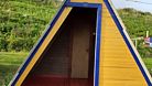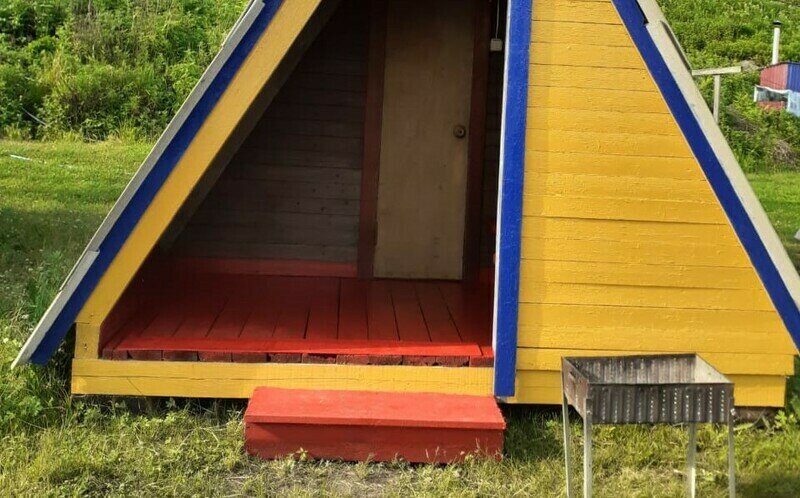 Небольшой деревянный домик по типу вигвама с верандой. Располагается напротив душевых и туалета. В домике две односпальные кровати. Отлично подойдет для одиночной поездки, проживания с другом или партнером. На веранде есть столик со скамейками и розетки.