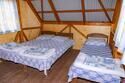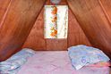 Небольшой деревянный домик по типу вигвама. Состоит из двух комнат и оснащен верандой. В одной комнате — двуспальная кровать, в другой — 2 односпальные. Поэтому в домике можно отлично разместиться с двумя детьми.