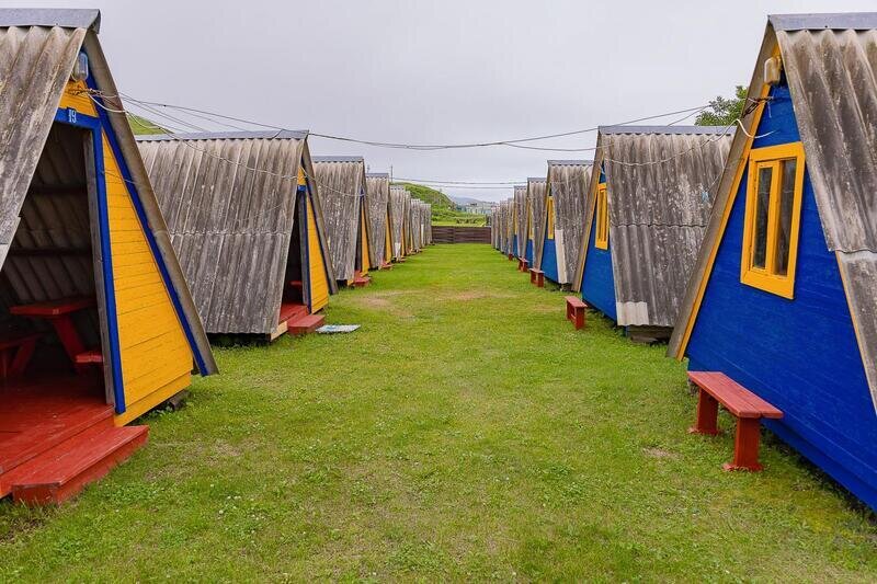 База предоставляет размещение в деревянных домиках, некоторые из которых оснащены холодильниками и верандами. На территории располагаются общие душевые, туалеты и умывальники. Электричество на базе работает круглосуточно.