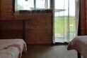 Коттедж сделан из бруса, с четырьмя комнатами на 2-3 человека и общей верандой. Стоимость указана за комнату в коттедже. Можно приехать большой компанией и снять весь дом. Коттеджи располагаются напротив детской и волейбольной площадок, в центре турбазы. Для каждой комнаты предусмотрен свой столик и стулья на веранде.