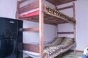Внутри: двуспальная кровать, односпальная двухъярусная кровать, тумбочки, вешалка, холодильник.