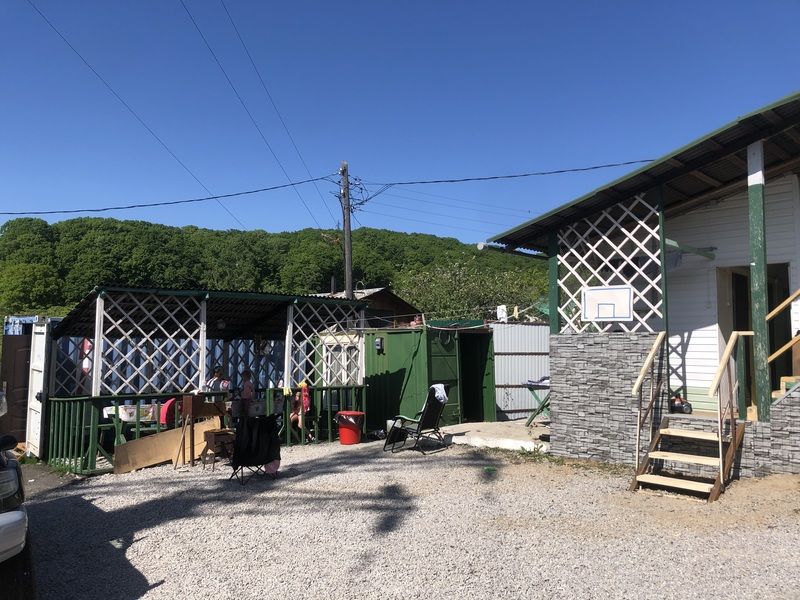 2-х этажная летняя мини-гостиница, своя территория обнесённая забором. На территории 3 беседки+мангалы, кухня в номере и одна общая, WI-FI отсутствует, летний разборный детский бассейн 2х3х1м, баня на дровах, стоянка на 6 м\мест(бесплатно для проживающих). Услуги на этаже - 2 общих туалета и душа с проточными нагревателями. Возможно размещение с животными. До общего песчаного пляжа - 150 м.