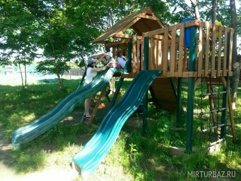 Маленьким постояльцам тоже не придется скучать на отдыхе. Для детей оборудована просторная игровая площадка, можно арендовать велосипеды.