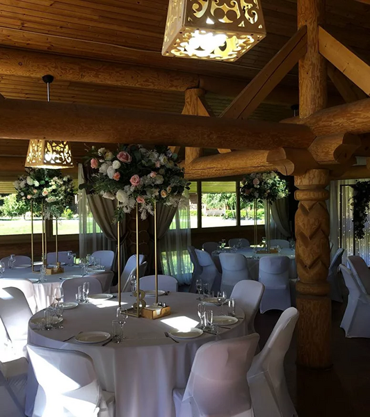 На территории работает роскошный ресторан, где гости могут приятно провести время, насладиться вкуснейшими блюдами, легкими закусками и разнообразными напитками. Также в ресторане есть банкетный зал, который отлично подойдет для проведения торжественных мероприятий на 20-45 человек.