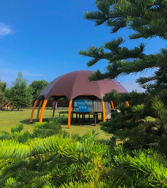 Купол может стать незаменимой альтернативой для празднования торжества уже привычным кафе или традиционным шатрам и все благодаря особому дизайну, который предусматривает не только красоту снаружи и внутри конструкции, но и архитектурные особенности, позволяющие реализовать любую расстановку столов внутри.
