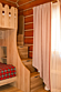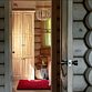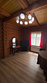 На первом этаже: маленькая прихожая, два зала, кухонная зона, комната с камином, баня, санитарный блок, (туалет, душевая кабина, раковина, горячая/холодная вода). Каждый зал представляет собой комнату украшенную в охотнимчьем стиле, с высоким потолком, большими окнами. В каждом зале имеется: диван, большой стол, 10 стульев, телевизор, стерео система, спутниковое телевидение. Кухонная зона оснащена: кухонным гарнитуром, раковиной (горячая/холодная вода), набором посуды, микроволновой печью, поттером, холодильником, стиральной машиной. В комнате с камином находится угловой диван. Баня представлена парной комнатой, предбанным помещением, в котором находится душевая кабина и санузел (туалет, раковина).