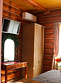 На втором этаже располагается большая мансардная комната. В комнате две двуспальные кровати, комод, две тумбы, зеркало, телевизор, спутниковое телевидение, кондиционер, вентилятор, балкон.