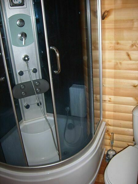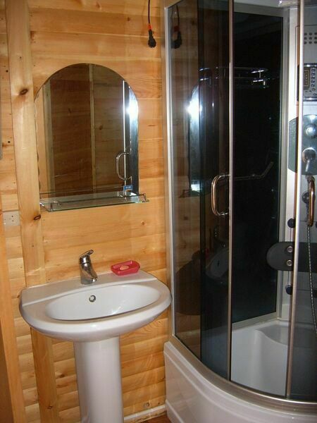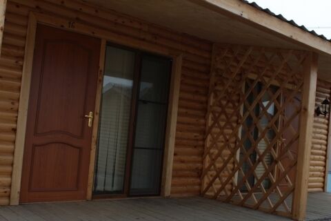 Номер в домике сконструированном по уникальной технологии из сибирской сосны 90% сушки. Как изнутри, так и снаружи бревна обшиты современным отделочным материалом - вагонкой Блок Хаусом(экологически чистое дерево).