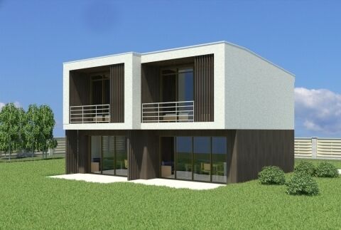 Общая площадь двух уровней 50 м кв. Один дом включает в себя два номера "Дуплекс" с лестницами внутри номеров. В номерах есть санузлы, кухня.