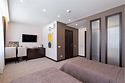 Студия — это просторный номер, состоящий из одного крупного помещения, поделённого на две функциональные зоны. Одна часть номера-студии — это гостиная, а вторая — спальня.Услуги и удобства