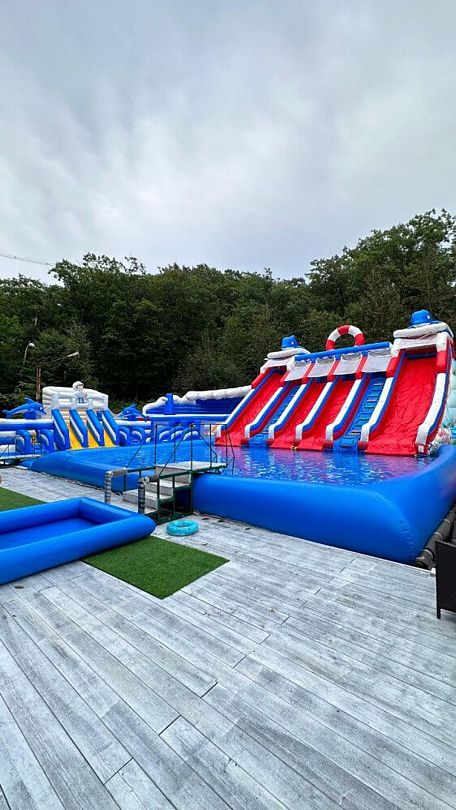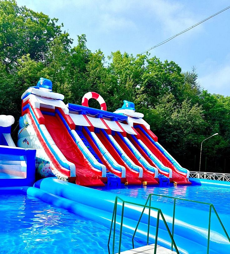 Читать полностьюПросторная зона отдыха с аквапарком. Яркие водные горки и удобные шезлонги под зонтами ждут вас для полноценного релакса на свежем воздухе.