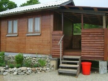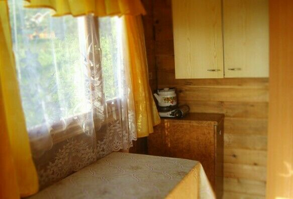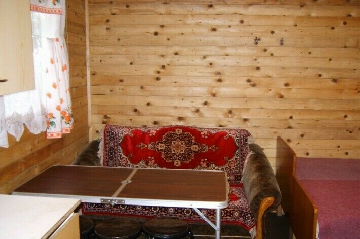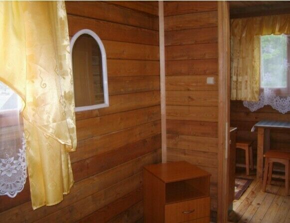 Каждый домик оборудован: 4-мя односпальными кроватями, диваном-кроватью на 2 человека, ковром, тумбочкой, зеркалом, столом, шкафом с комплектом посуды, столиком обеденным, 4-мя табуретами, холодильником и электроплитой. Возможно обустройство дополнительного платного спального места на диван-кровати для взрослого или детей, старше 7 лет. Комплекты постельного белья прилагаются. Каждый домик имеет террасу со столом и скамейками и рассчитан на размещение 6 человек, включая детей.