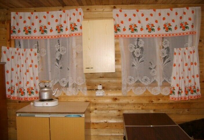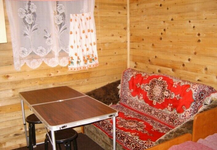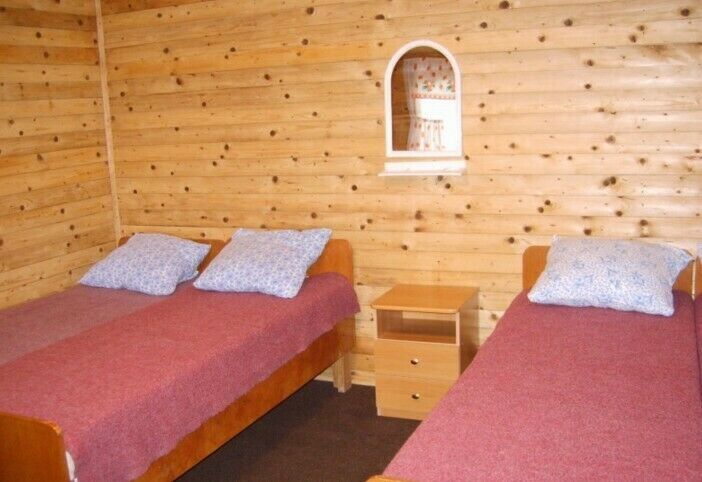 Номер оборудован: 2-х спальной кроватью, ковриком, столом, 2-мя табуретами, холодильником, шкафом с комплектом посуды, зеркалом, тумбочкой, газовой плитой. Комплекты постельного белья прилагаются.