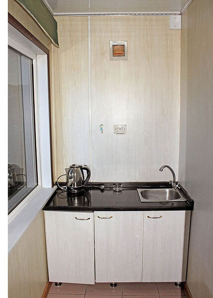 Общий холодильник, раковина и туалет на этаже, душ на территории базы.