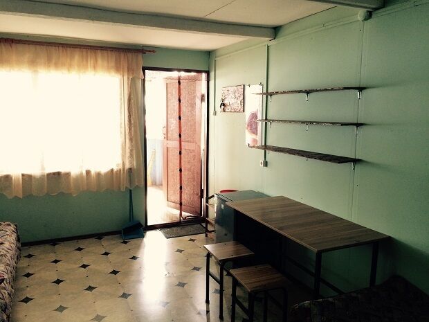- Одна комната, кухня общая, санузел на улице, душевая с холодной и горячей водой.