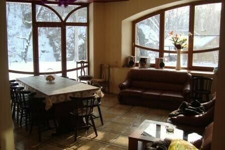 В доме: общая гостиная, на каждом этаже ванная комната с туалетом, горячая вода, есть спутниковое TV, караоке, каминный зал, кухня оборудована техникой и посудой.