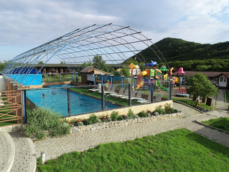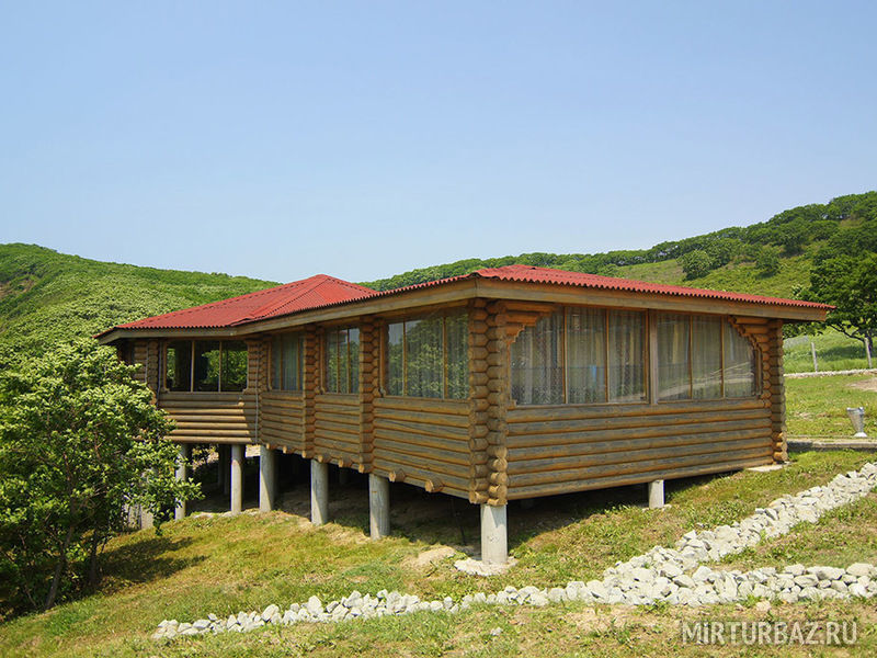 Отдыхающим предлагаются варианты размещения: отдельно стоящие VIP-домики с верандой, гостиничные номера с видом на море и бюджетные таунхаусы. Территория базы 75 000 м². Здесь есть детская площадка, которая оборудована по европейским стандартам, гостеприимное кафе и даже просторный вольер с оленями.
