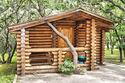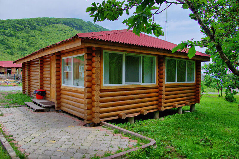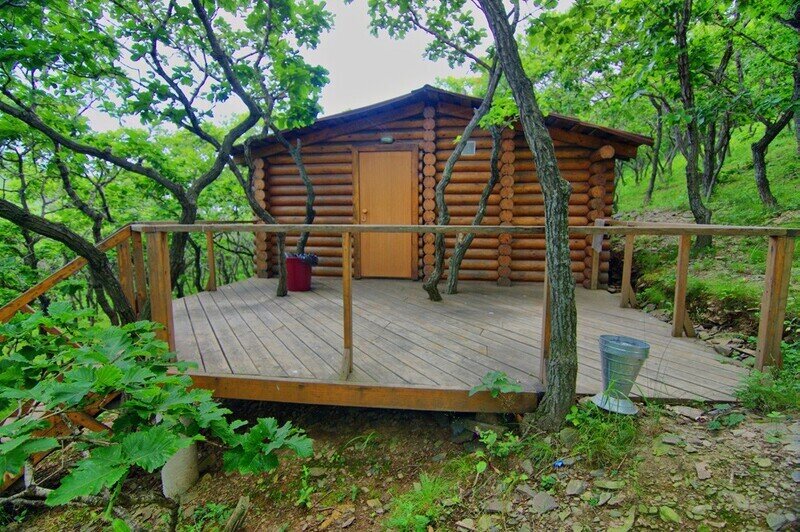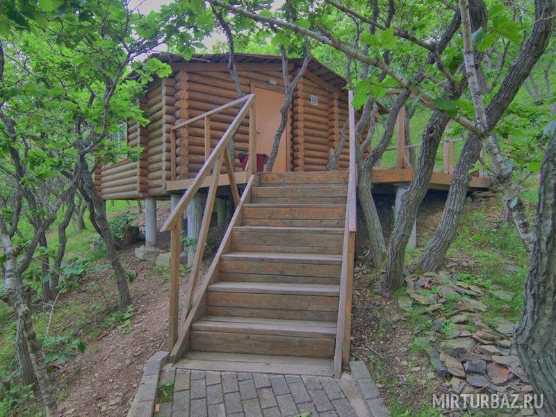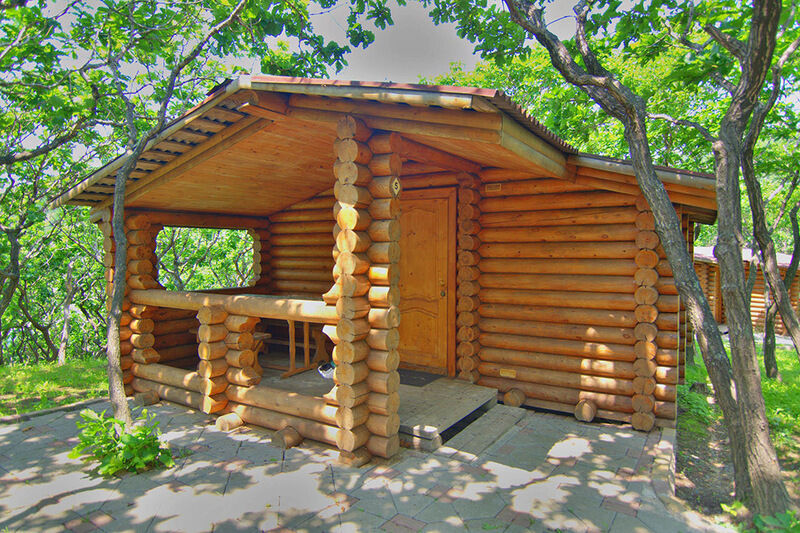 VIP-домик построен из леса-кругляка породы лиственница, с сохранением структуры дерева внутри дома, что гарантирует комфортную температуру и влажность. Находится в дубовом лесу, расстояние до соседнего дома 15 метров.
