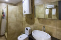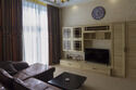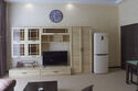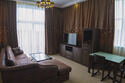 В номере телевизор диагональю 102 см, кондиционер, мини-холодильник, есть чайник и необходимая посуда, фен, утюг. На полу ковровое покрытие. Собственная ванная комната и туалет.