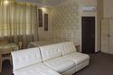 Номер состоит из прихожей и гостиной с мягкой мебелью и с одной двуспальной кроватью 160*200 см. Позволяет разместить до 4-х человек. Отдельно организовано рабочее пространство с письменным столом, есть балкон.