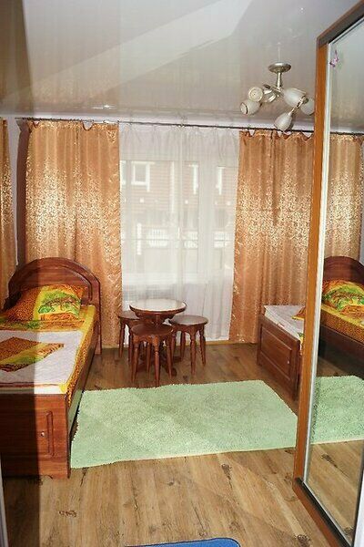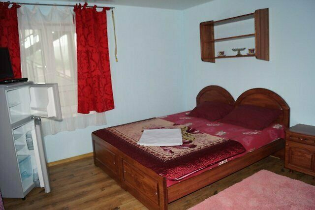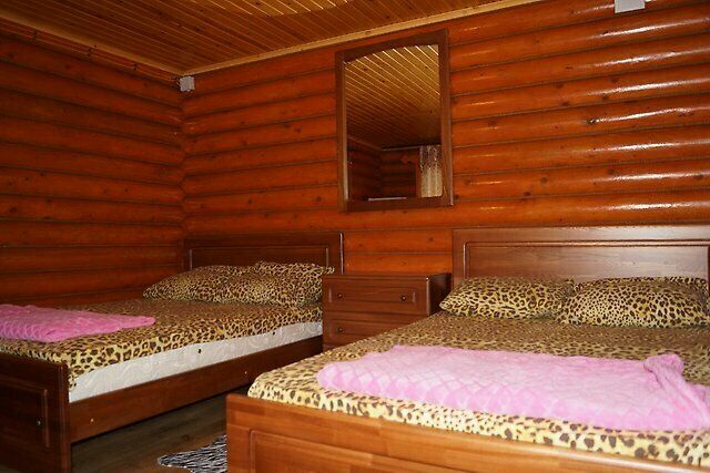 Домик с удобствами: двухместные номера, в номерах душ и туалет, на первом этаже двуспальные кровати, на втором две односпальные. Также в номерах есть телевизор, холодильник, комод, тумбочка стол. Постельное белье выдается.