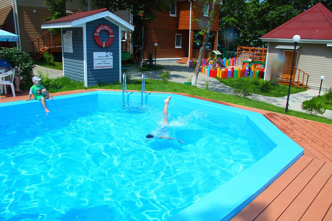 Тип бассейна: открытый бассейнРядом с бассейном: шезлонги, зонтикиВремя работы: от 09 до 22Смыть соль Японского моря можно в бассейне с чистейшей пресной водой в центре усадьбы.