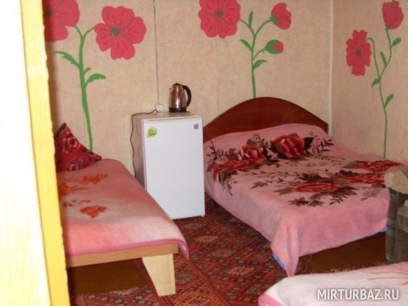 В каждой комнате двуспальные и односпальные кровати. К каждой комнате пристроена веранда, которая также оборудована как кухонная зона. На веранде имеется холодильник, газовая печка (баллончики необходимо приобретать самостоятельно), электрочайник, посуда. Удобства находятся на улице (душ с горячей водой, благоустроенные туалеты).