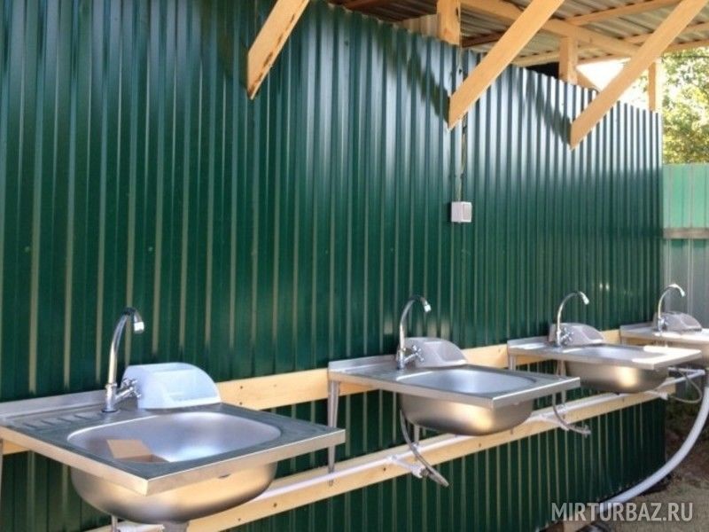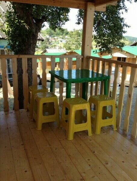 - К услугам отдыхающих предлагаются 10 деревянных летних домиков. Дома деревянные. К каждому домику примыкает веранда. Расстояние между домами — 2 метра.