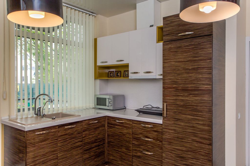 Кухня оборудована холодильником, микроволновой печью, чайником, электрической плитой и всей необходимой посудой.